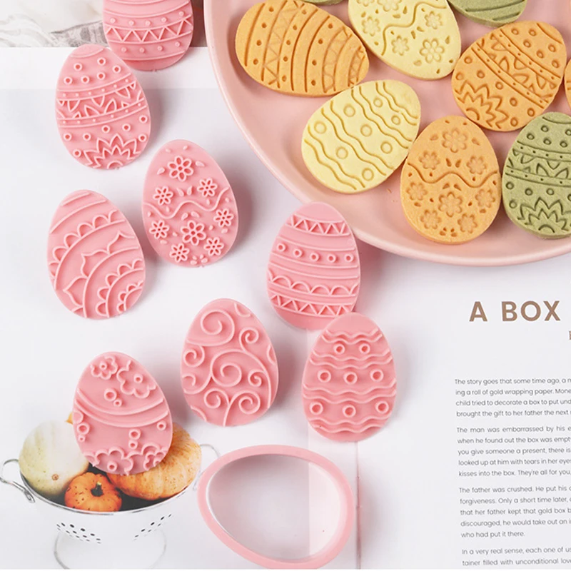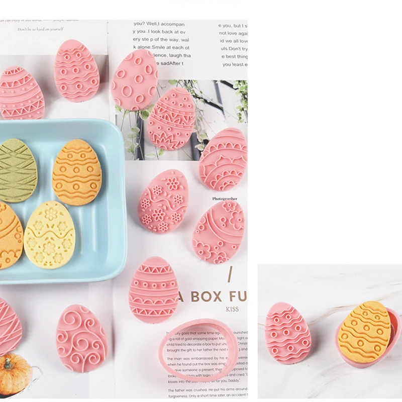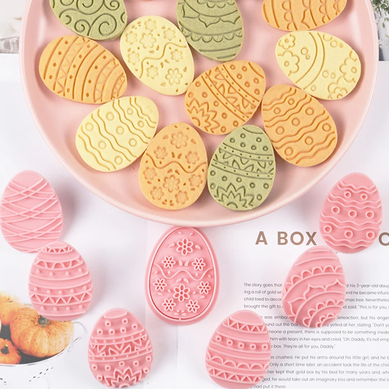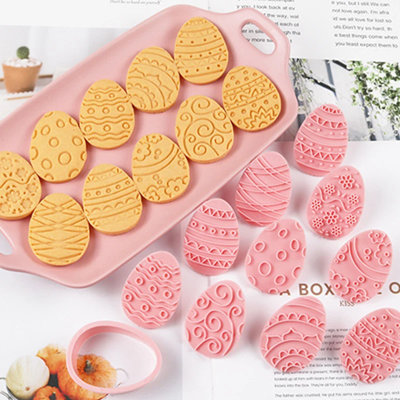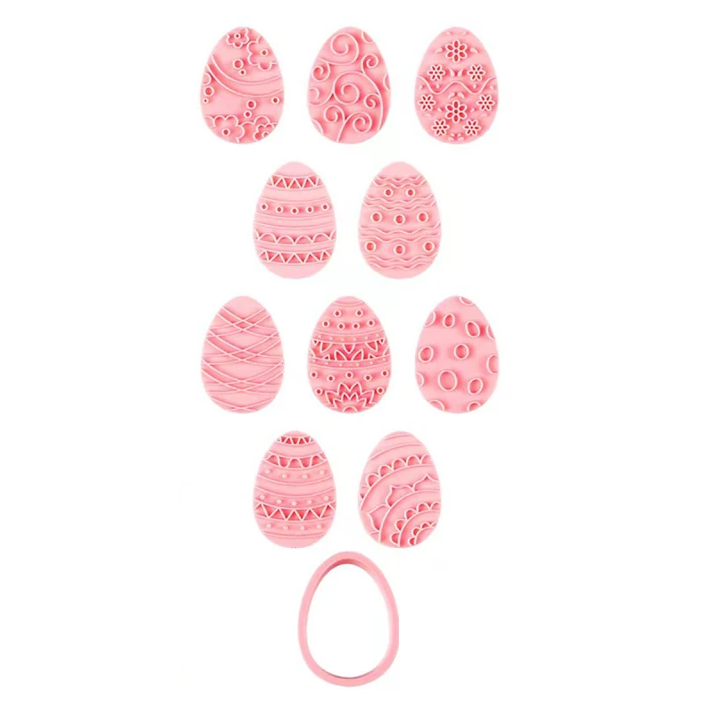 10 Pcs Easter Cookie Cutter Set, 3D Egg Embossing Cookie Cutters, Easter Egg Theme Fun Cookie Molds, For Biscuit Fondant