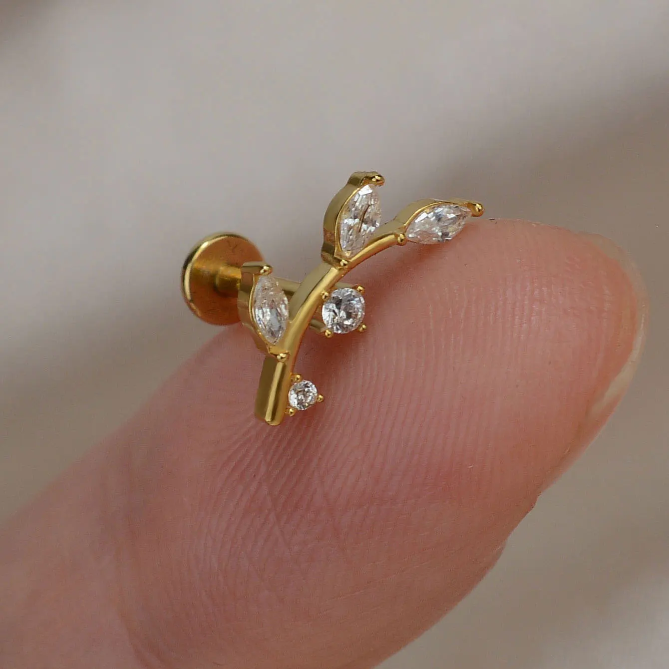 1Piece 16G Titanium Steel CZ Leaf Bee Piercing Lip Labre Studs Tragus Helix Cartilage Couch Lobe Earrings Body Jewelry For Women