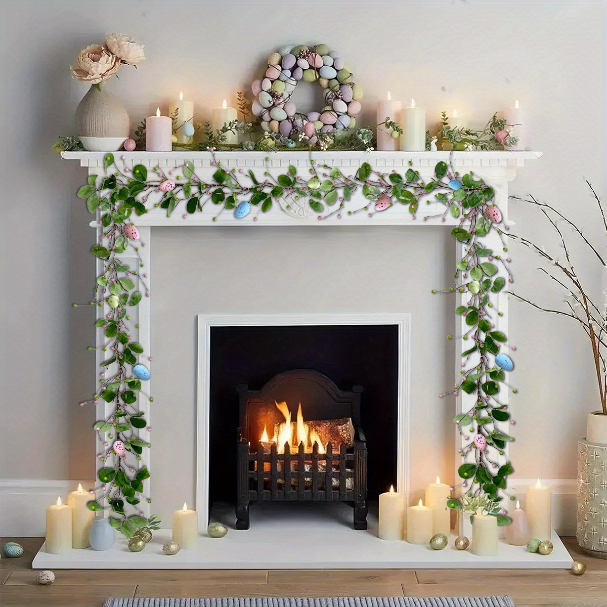6.2ft Long Artificial Easter Egg and Mixed Berry Garland Hanging Rustic Spring Garland Pastel Easter Garland Vine String