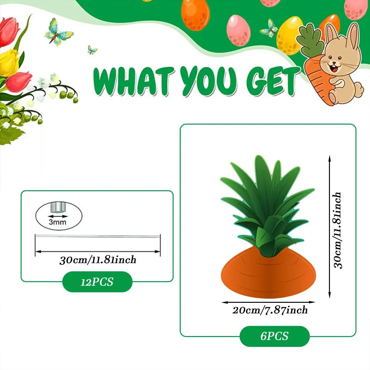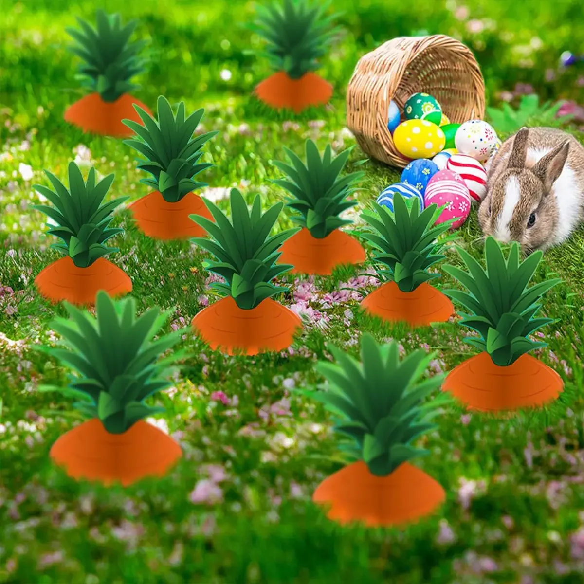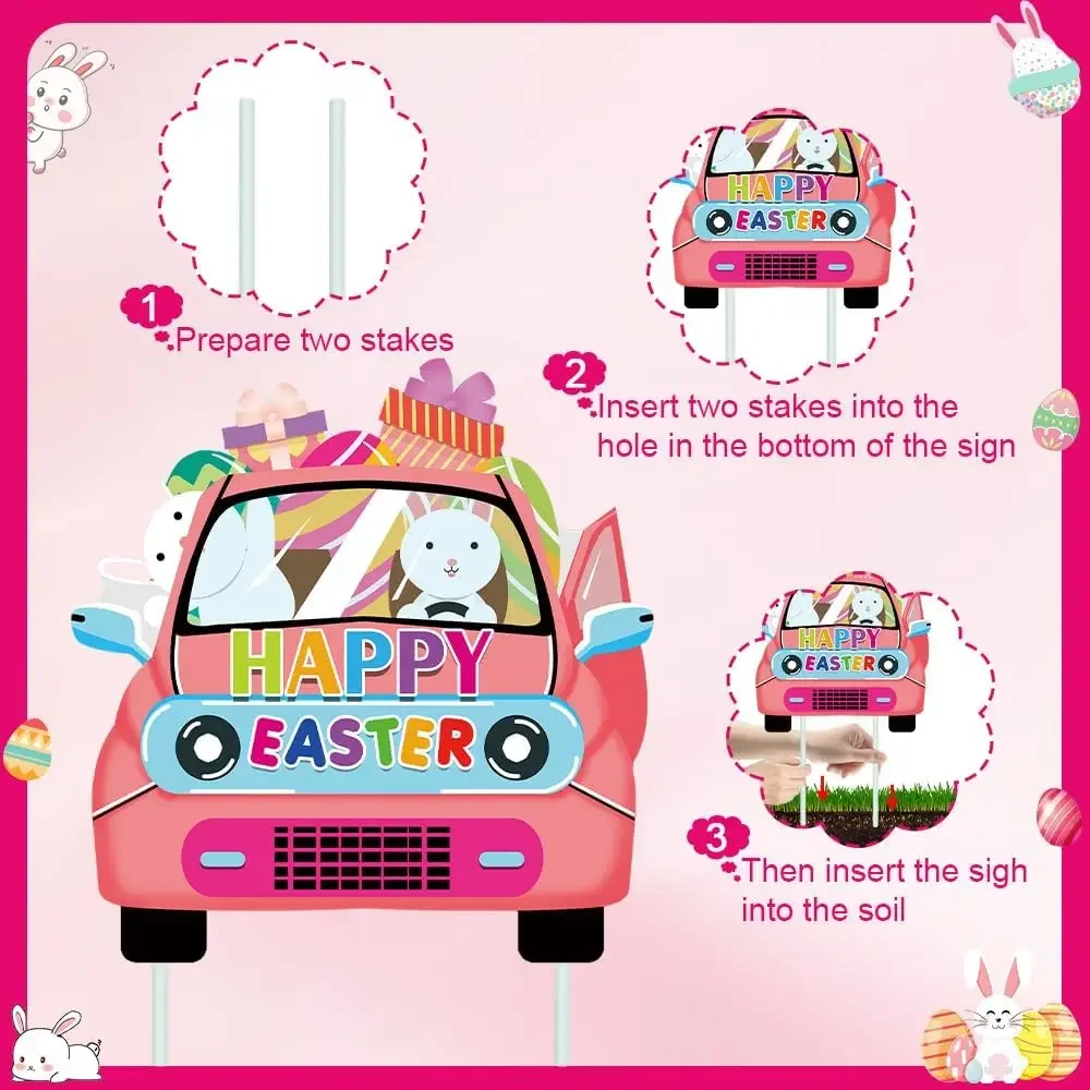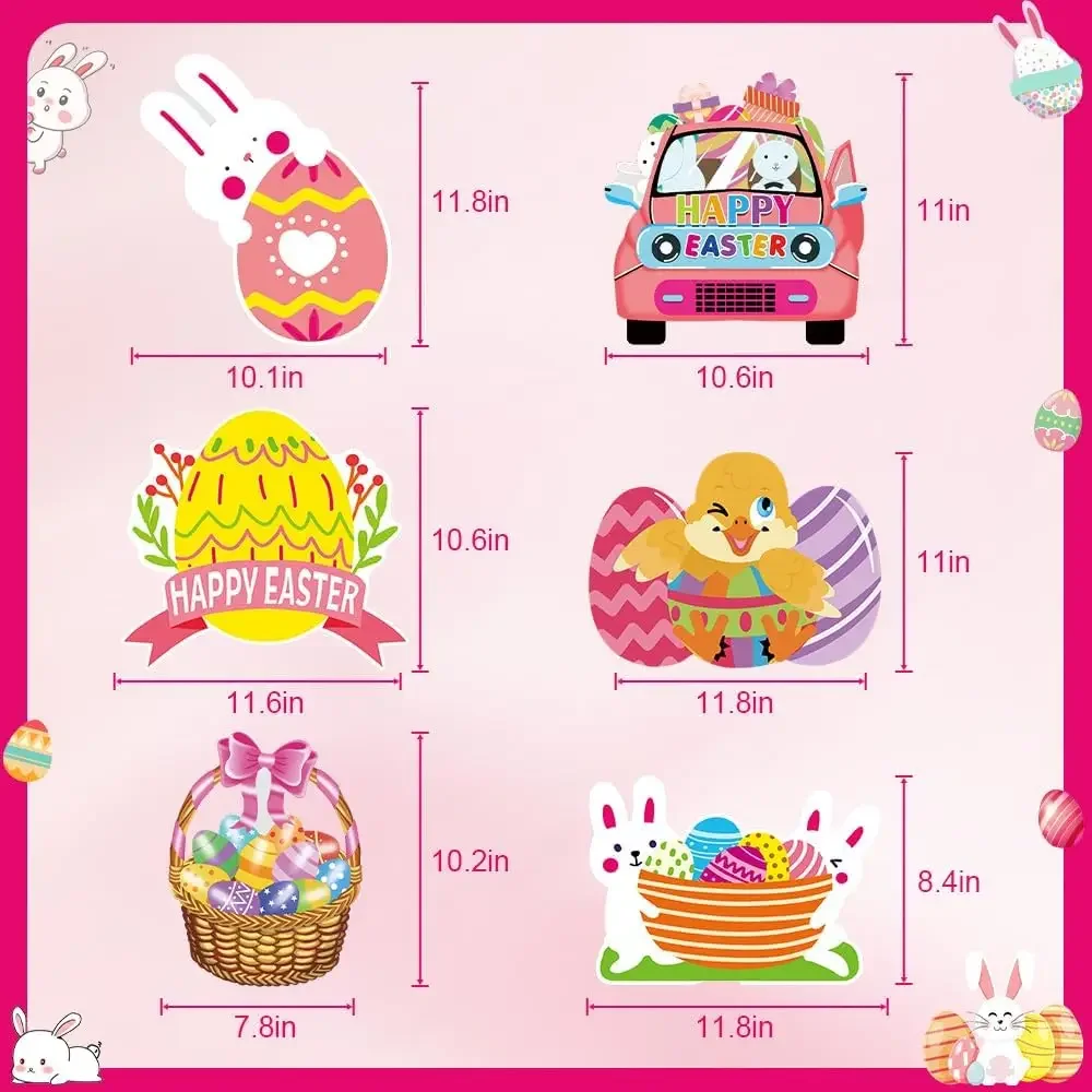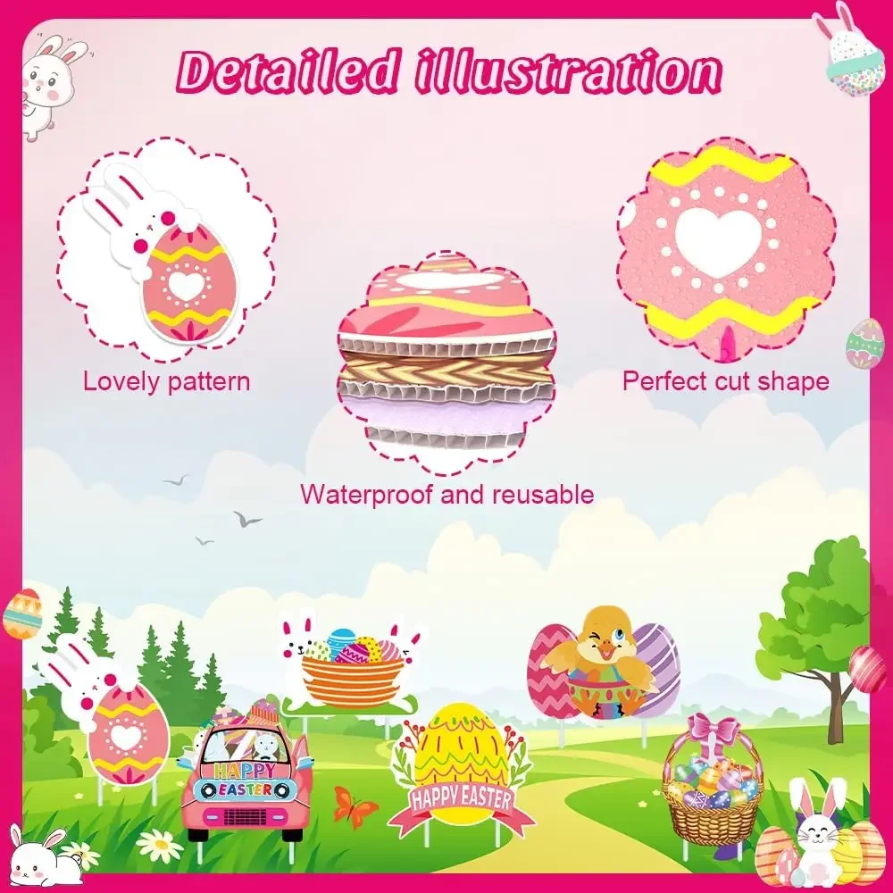 - Easter Yard Signs: Decorated with different kinds of Easter elements including Eggs, rabbits, carrots... ; Just inset the stakes into the cardboard andput them in your yard or anywhere else during the holiday season, they willcreate festive atmosphere of Easter