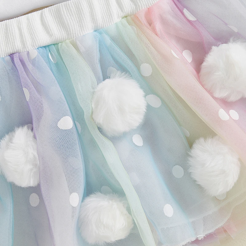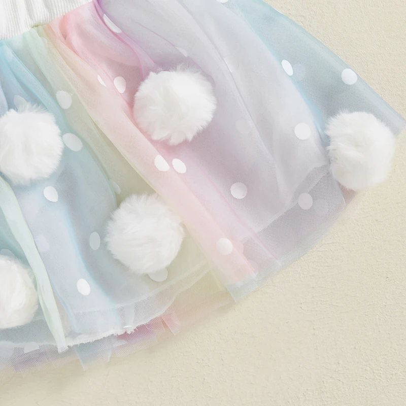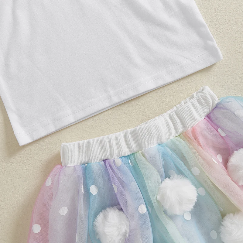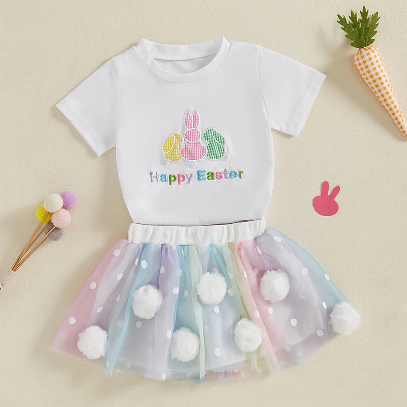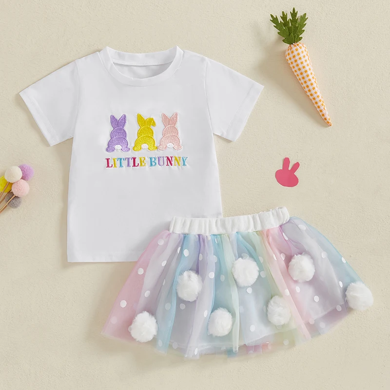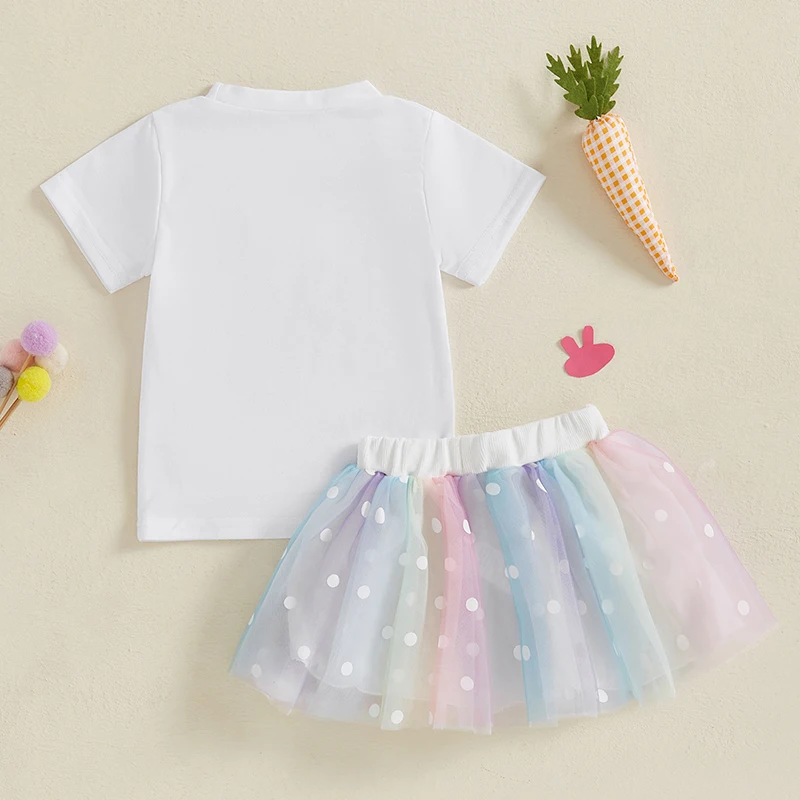 Adorable Baby Girl Easter Outfit with Bunny Embroidery and Polka Dot Tulle Skirt - 2 Piece Set for Spring Celebrations