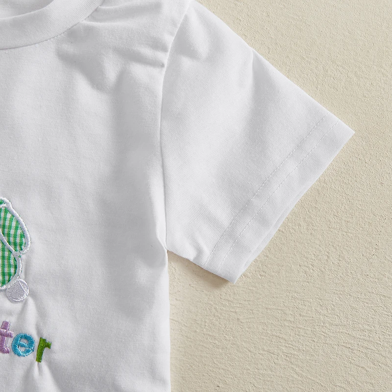Toddler Girl Easter Outfit Bunny Embroidery Short Sleeve T-Shirt with Dot Pattern Tulle Skirt 2 Pcs SetSize(cm)