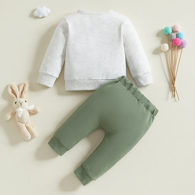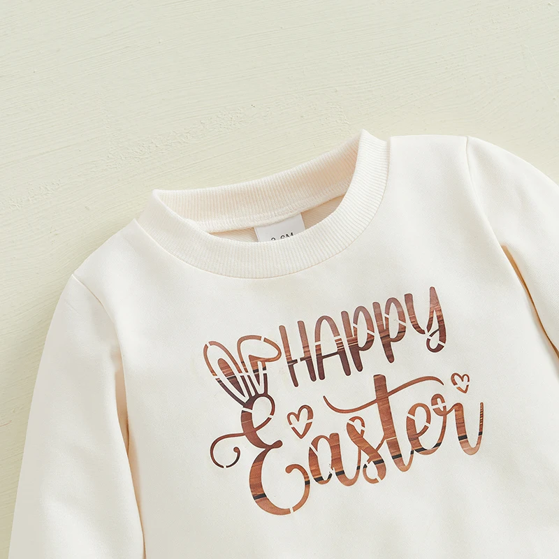 Baby Toddler Easter Outfit Letter Print Long Sleeve Sweatshirt Long Pants 2 Piece Spring Set for Boys GirlsSize (cm)