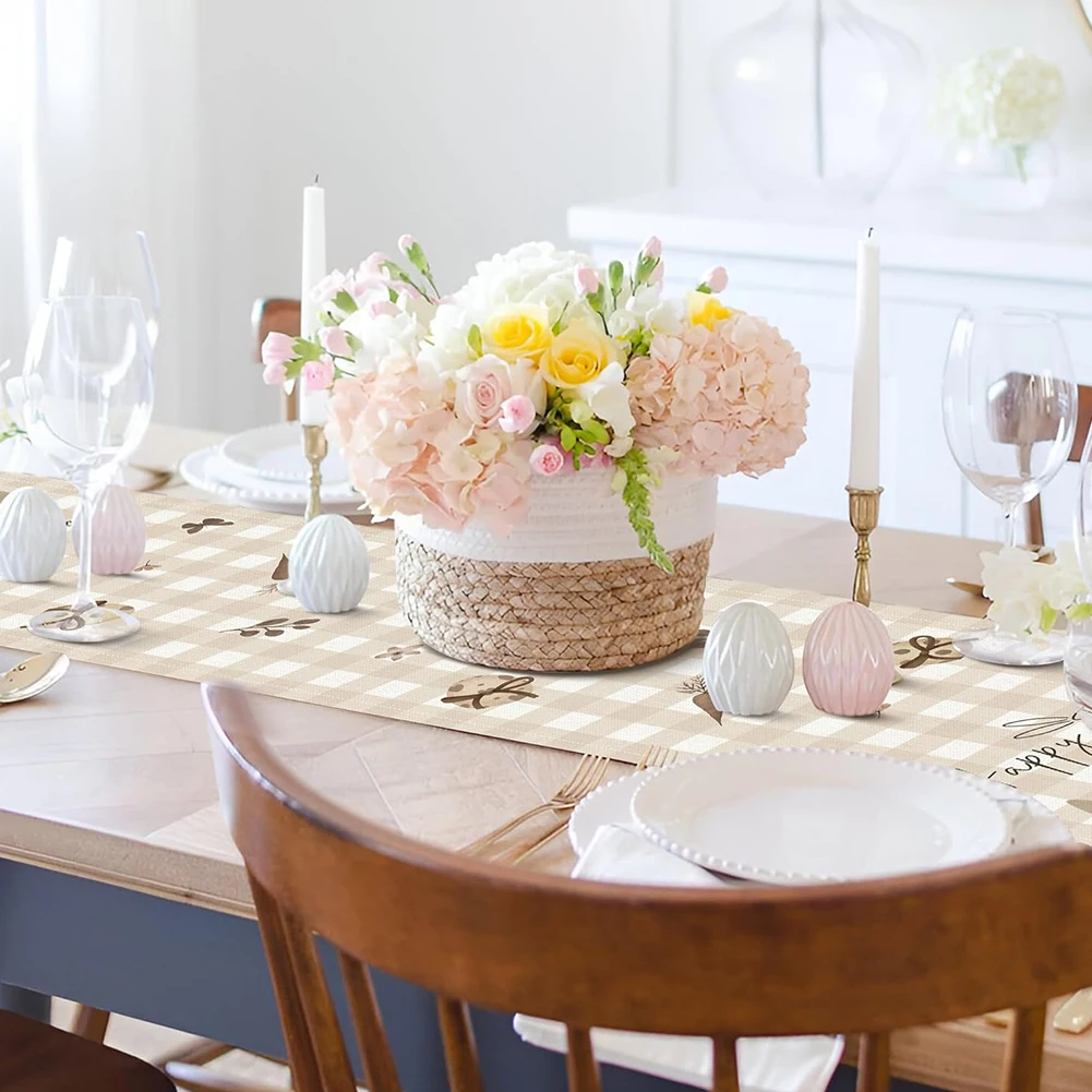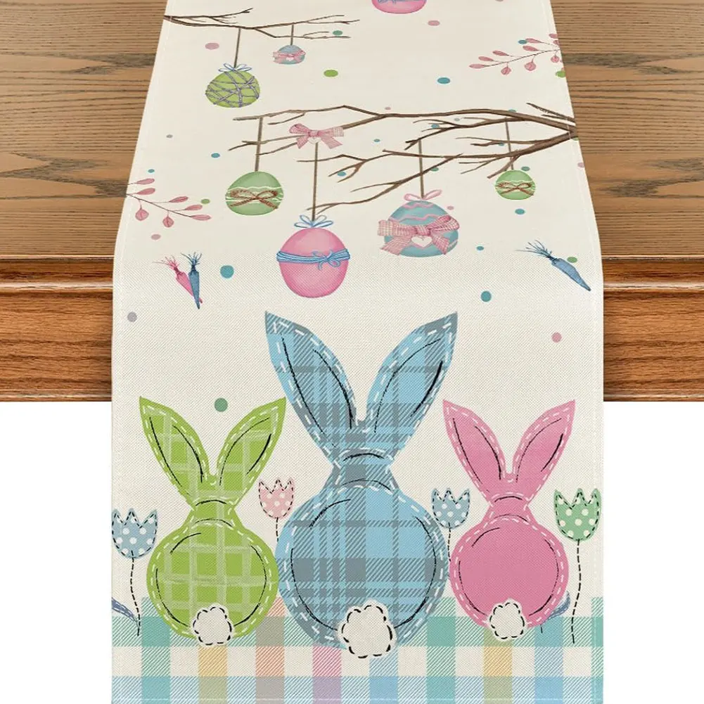 Easter Bunny Linen Table Runner Easter Rabbit Table Runner Washable Bunny Dining Table Cloth Placemat Easter Bunny Spring Linen Table Runner Spring Holiday Happy Easter Decoration
