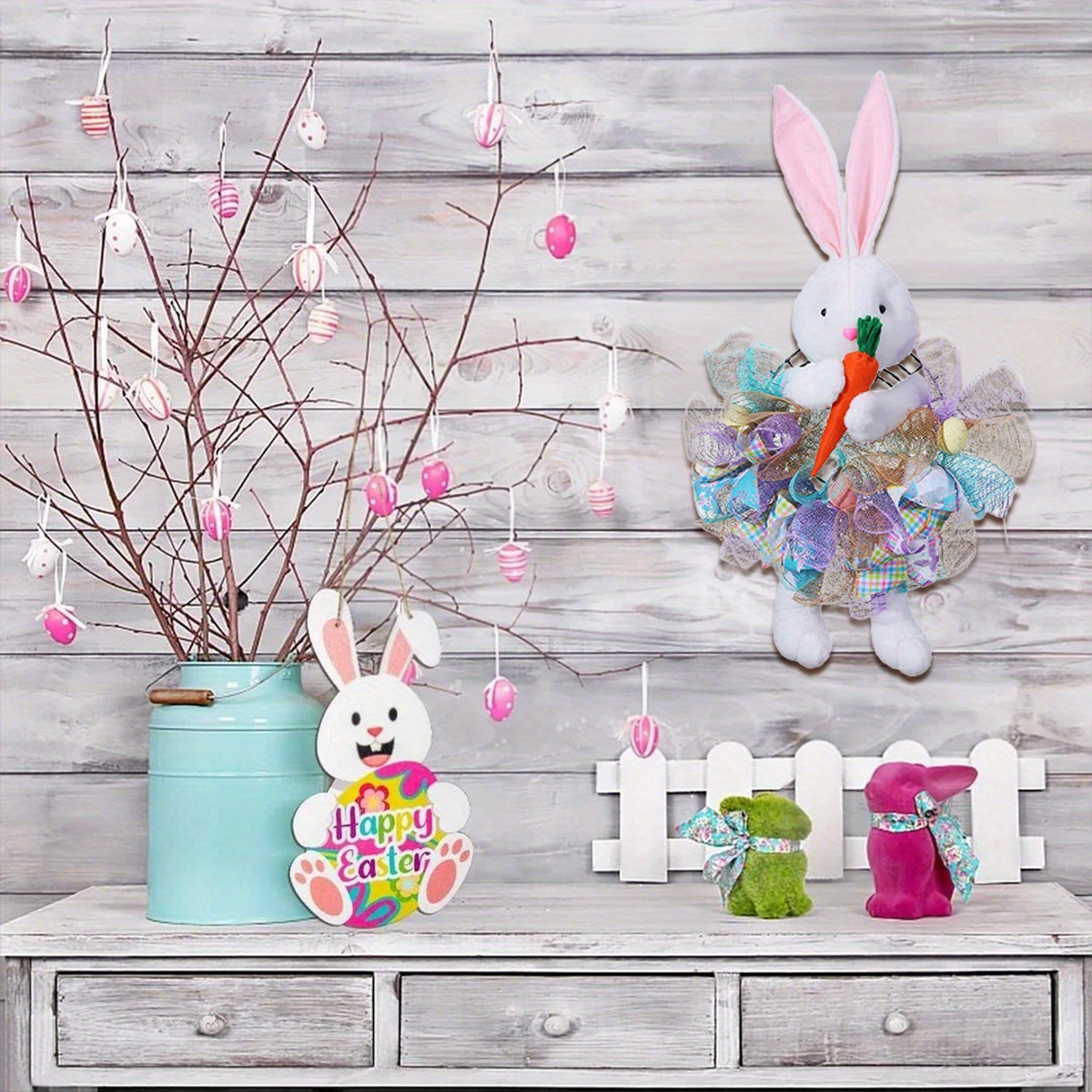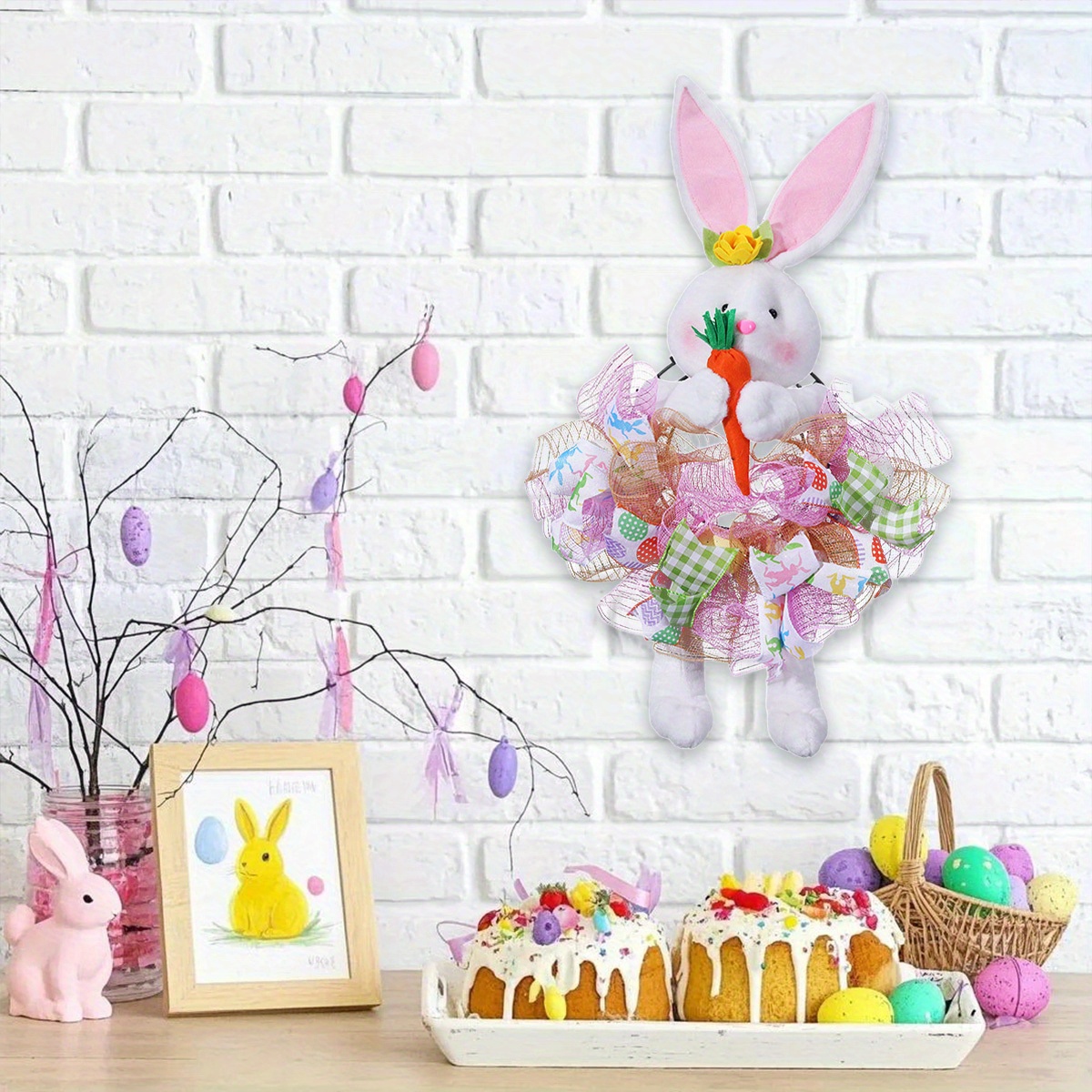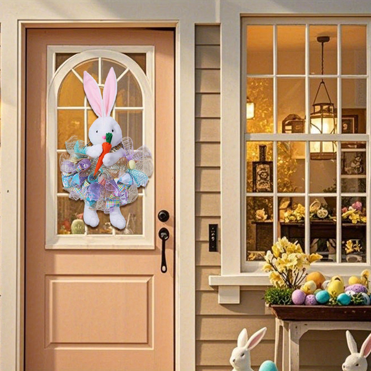 Easter Bunny Wreaths for Front Door, 28.3in Easter Wreath Rabbit Wreaths with Bunny Ears, Legs and Ribbons, Spring