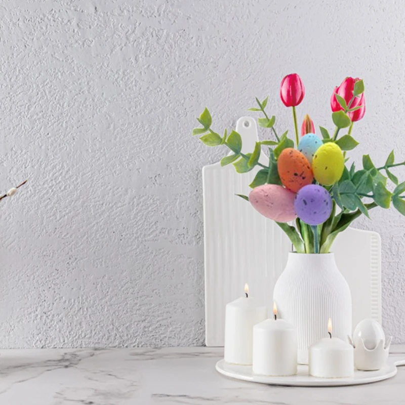 Easter Egg Picks Set with Artificial Pastel Eggs and Green Leaf Branches for Home Decor and Spring Celebrations