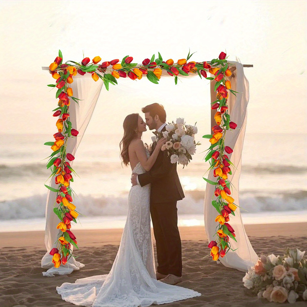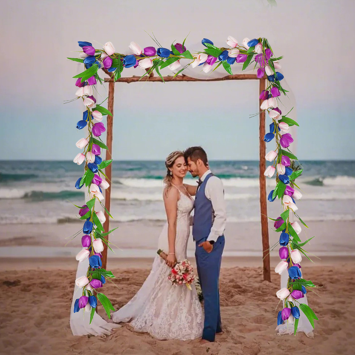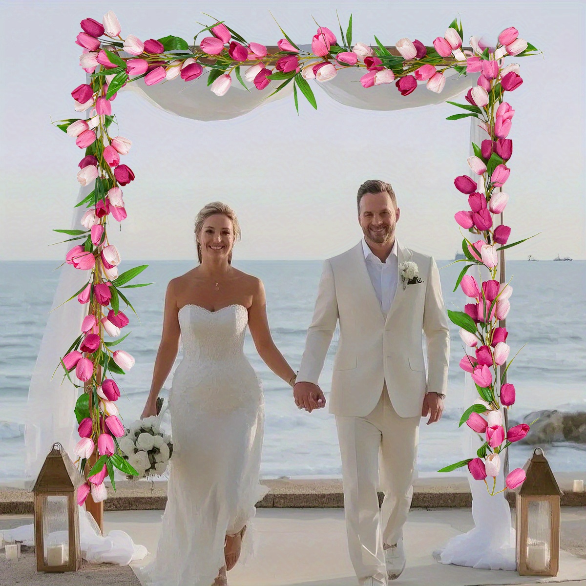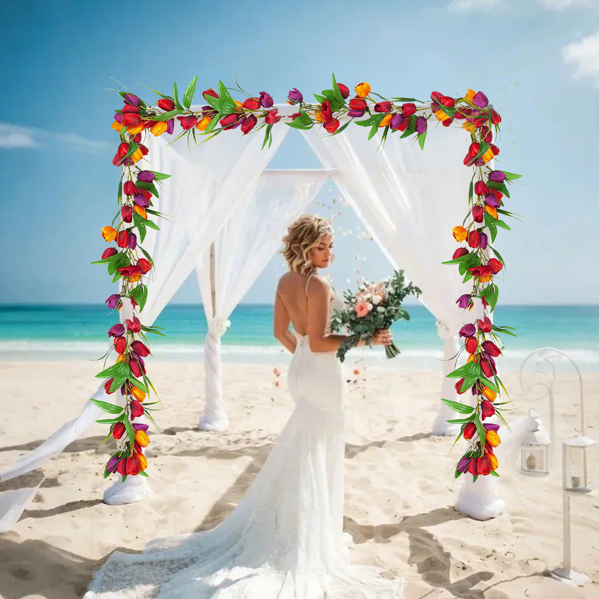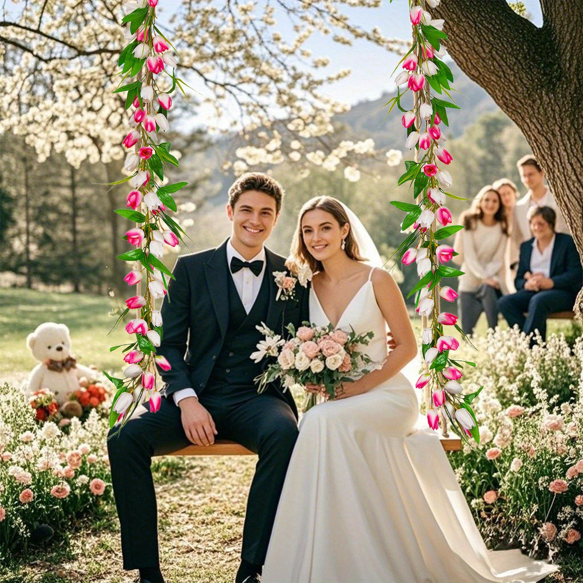 Easter Tulip Garland 6.5ft Artificial Spring Garland Easter Decorations Garland with Tulip Flower Green Leaves Hanging