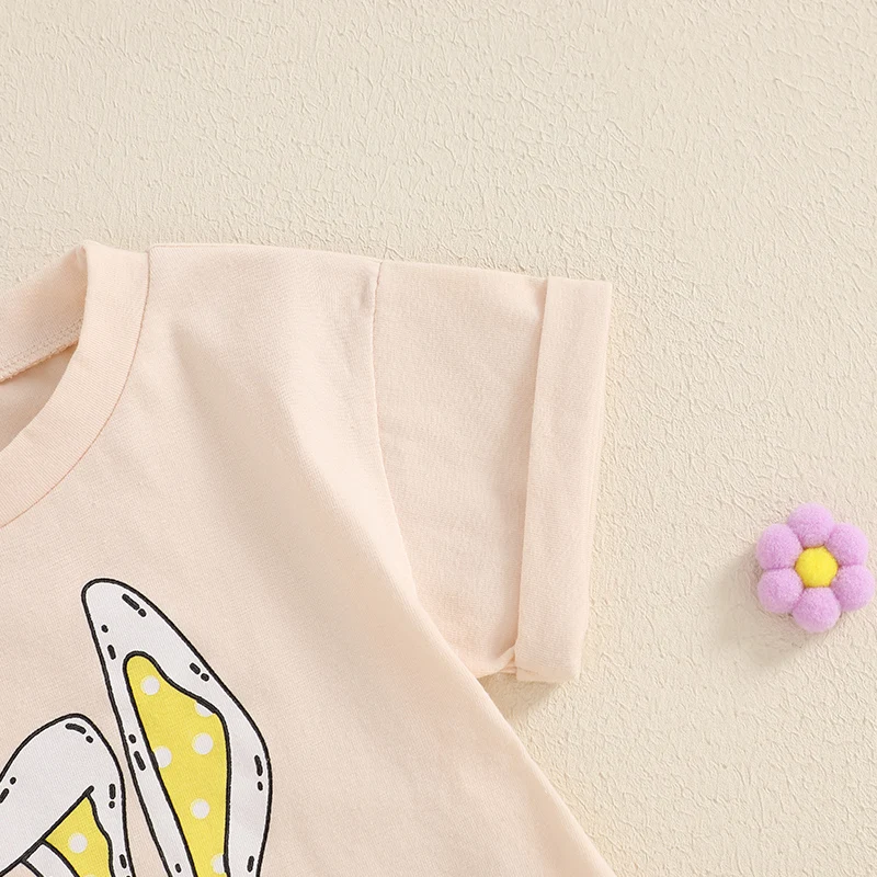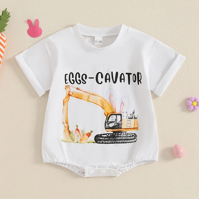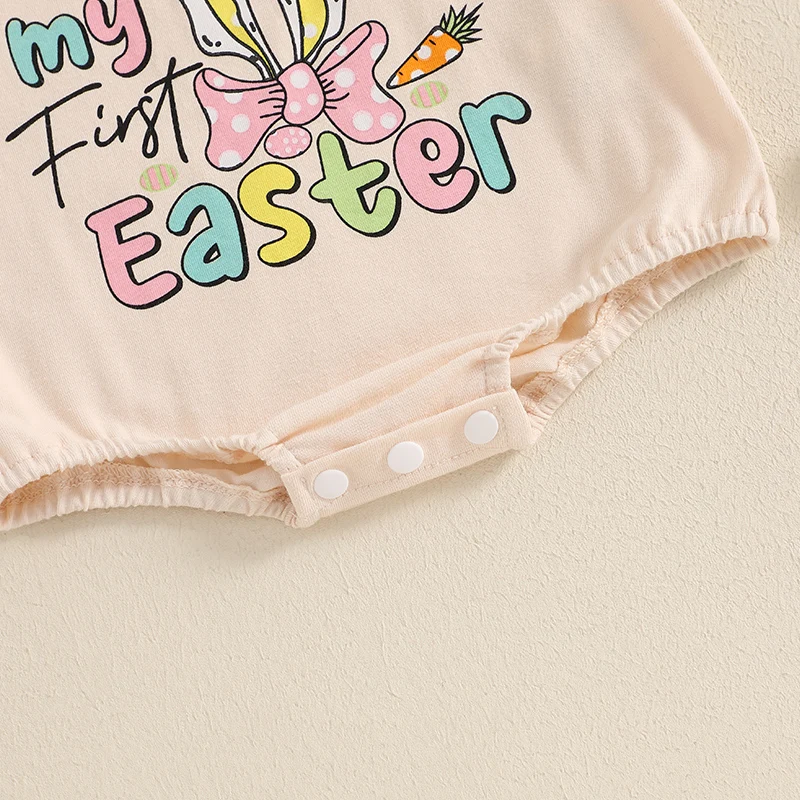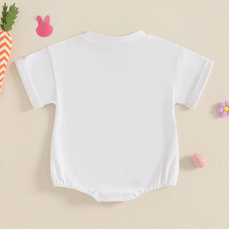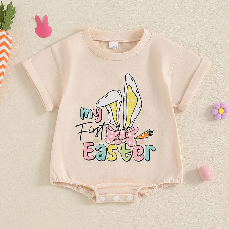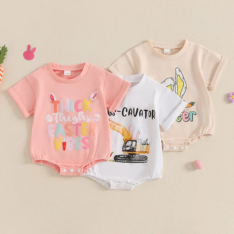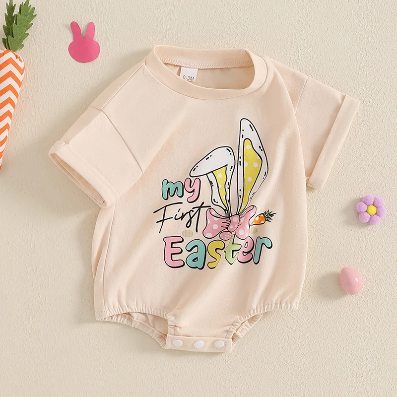 Baby Easter Romper Spring Short Sleeve Bunny Ears Letter Print Loose Bodysuit Newborn PlaysuitFeatures: