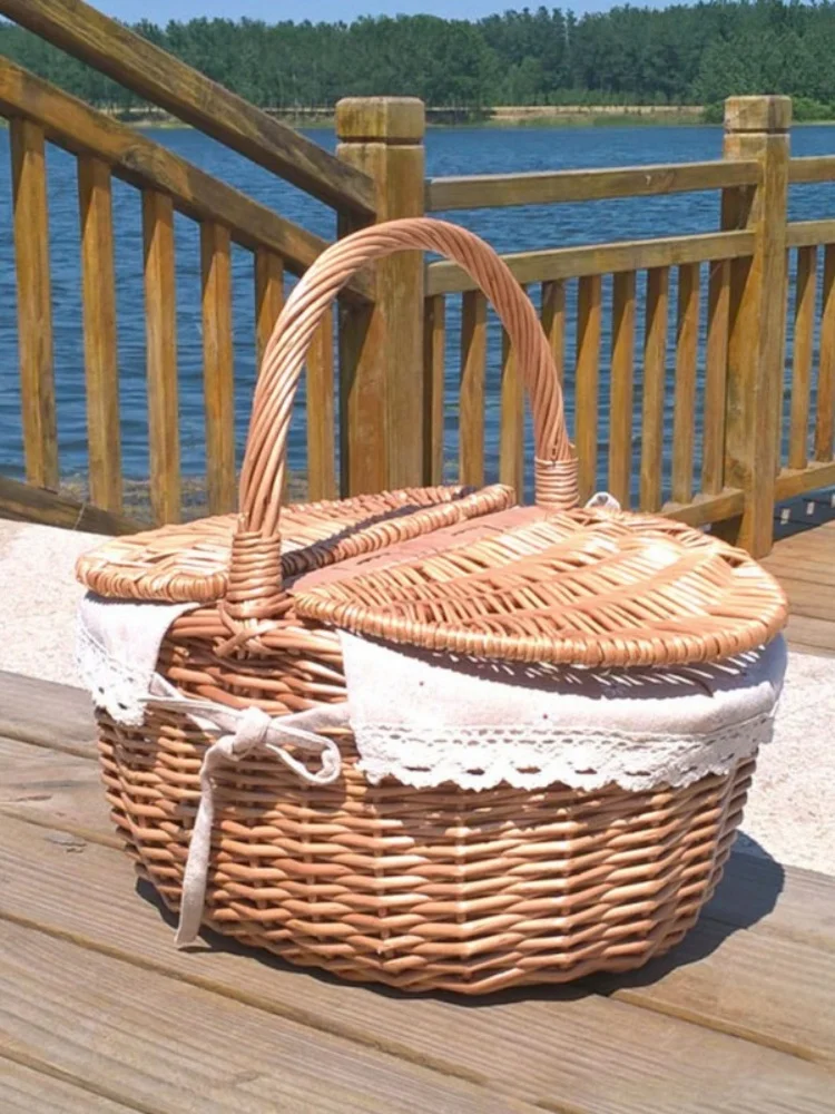 Picnic Fruit Storage Basket Easter Household Snack Container Wicker Basket with Lid Multi-function Wicker Basket Home Supply