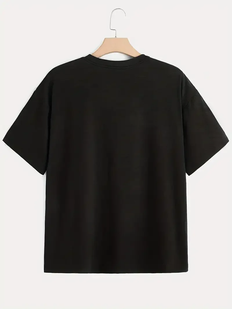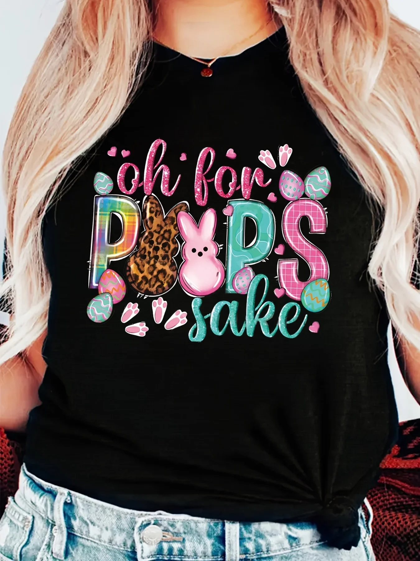 Plus Size Women's Easter Casual T-Shirt, Cartoon \u0026 Letter Print Short Sleeve Tee with Slight Stretch