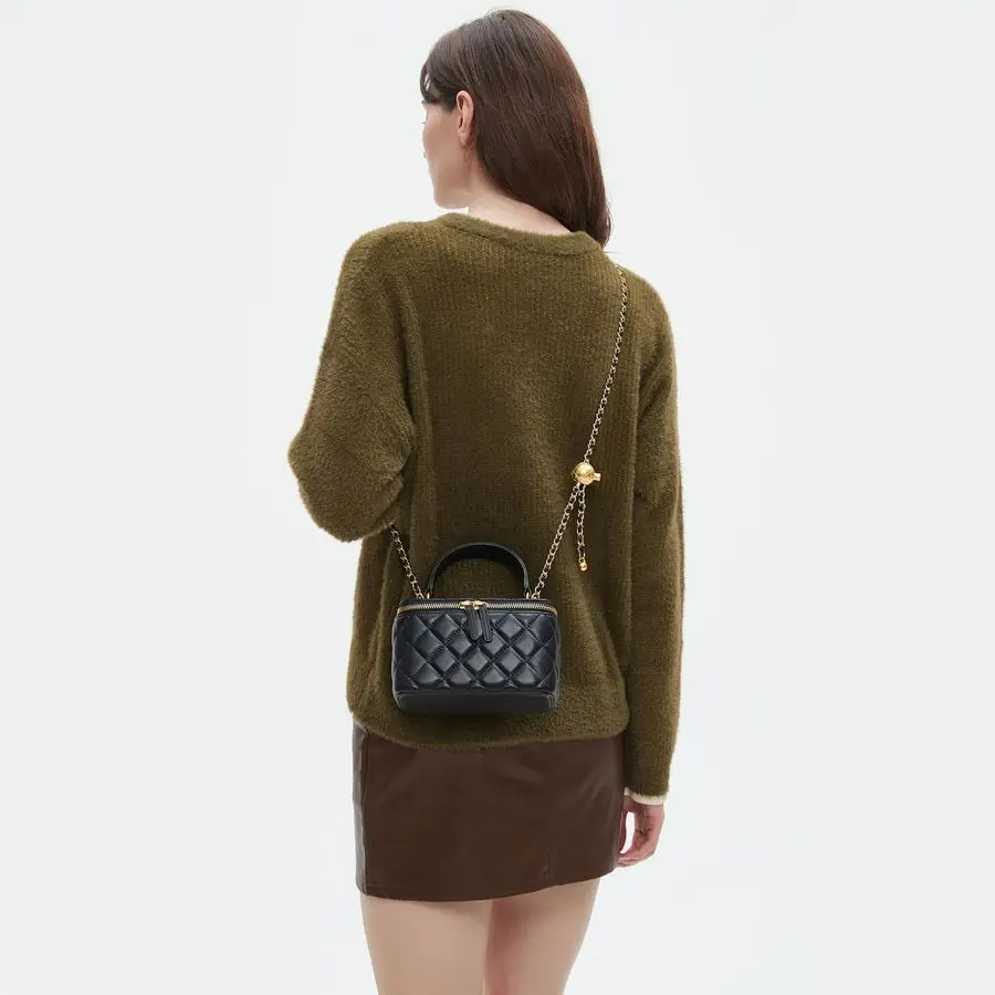 Quilted Box Crossbody Purse For Women Designer Leather Mini Top Handle Pouch Bag With Metal Chain Strap
