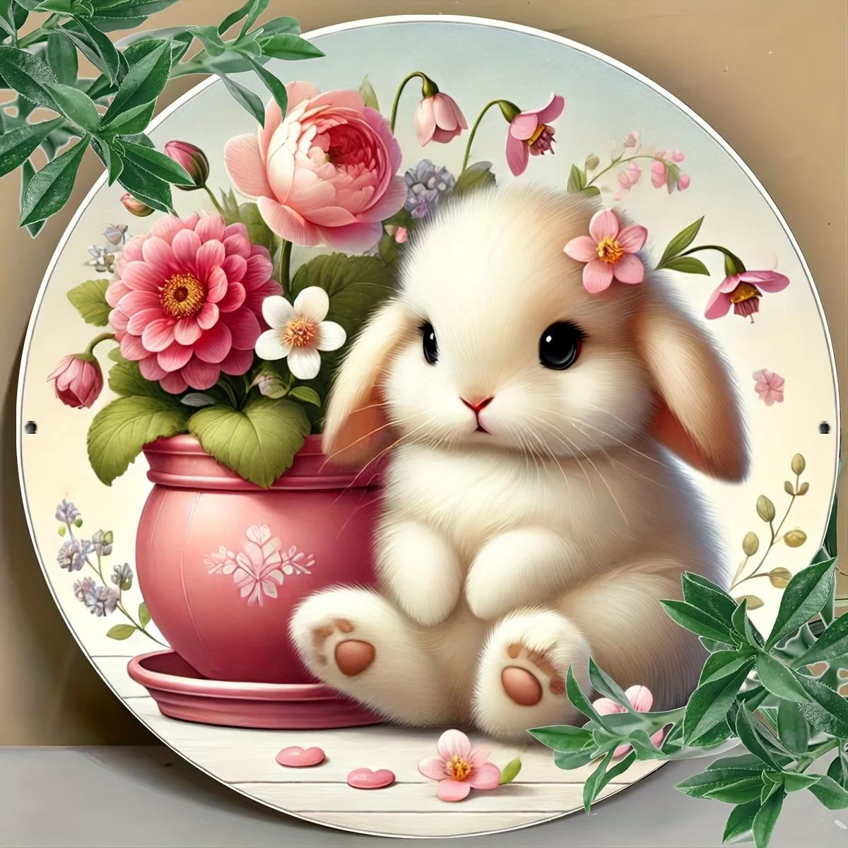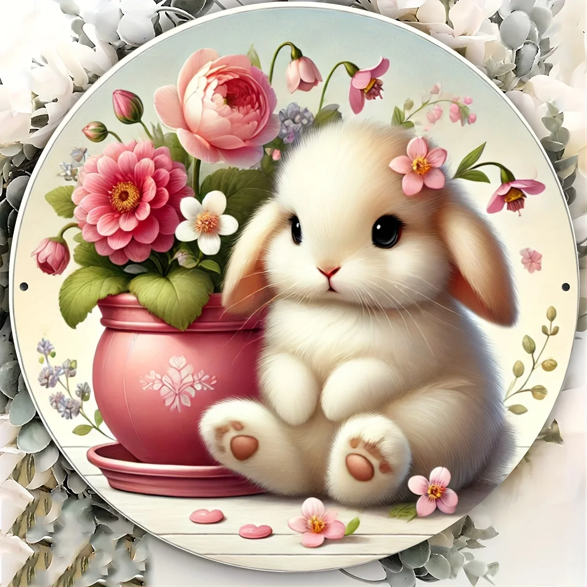 Rustic Easter Bunny Basket Wreath Aluminum Sign - Metal Plaque for Home Decor, Artistic Craft & Scrapbooking Supplies