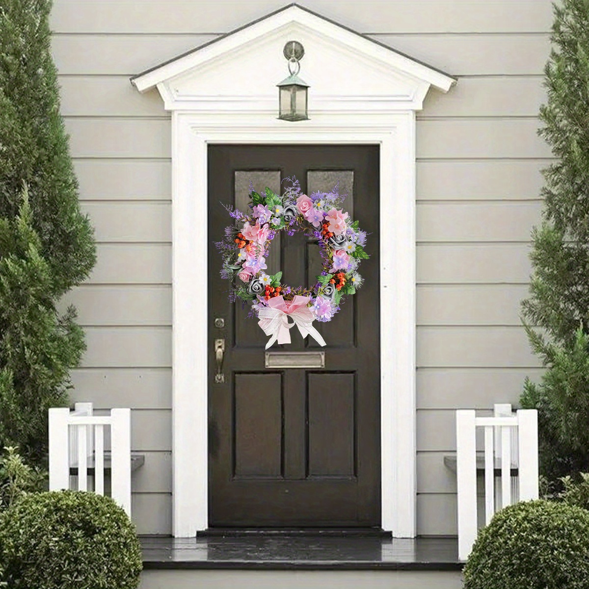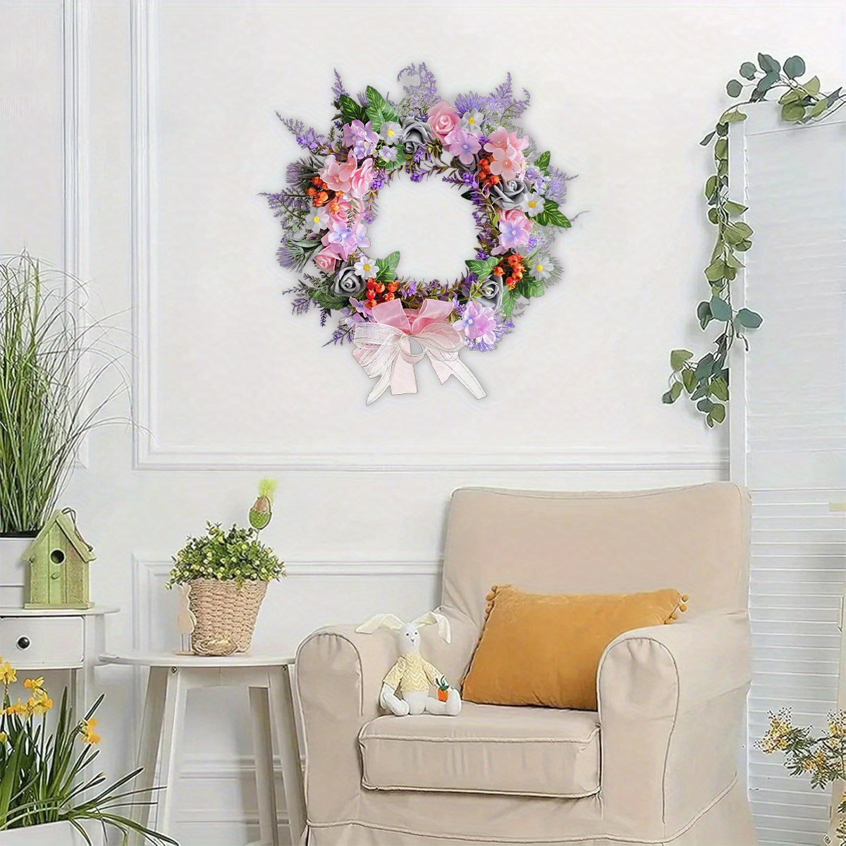 Spring Rose Daisy Wreath, 15.7in Spring Summer Bow Artificial Wreath for Front Door Easter Spring Wreath Home Wall