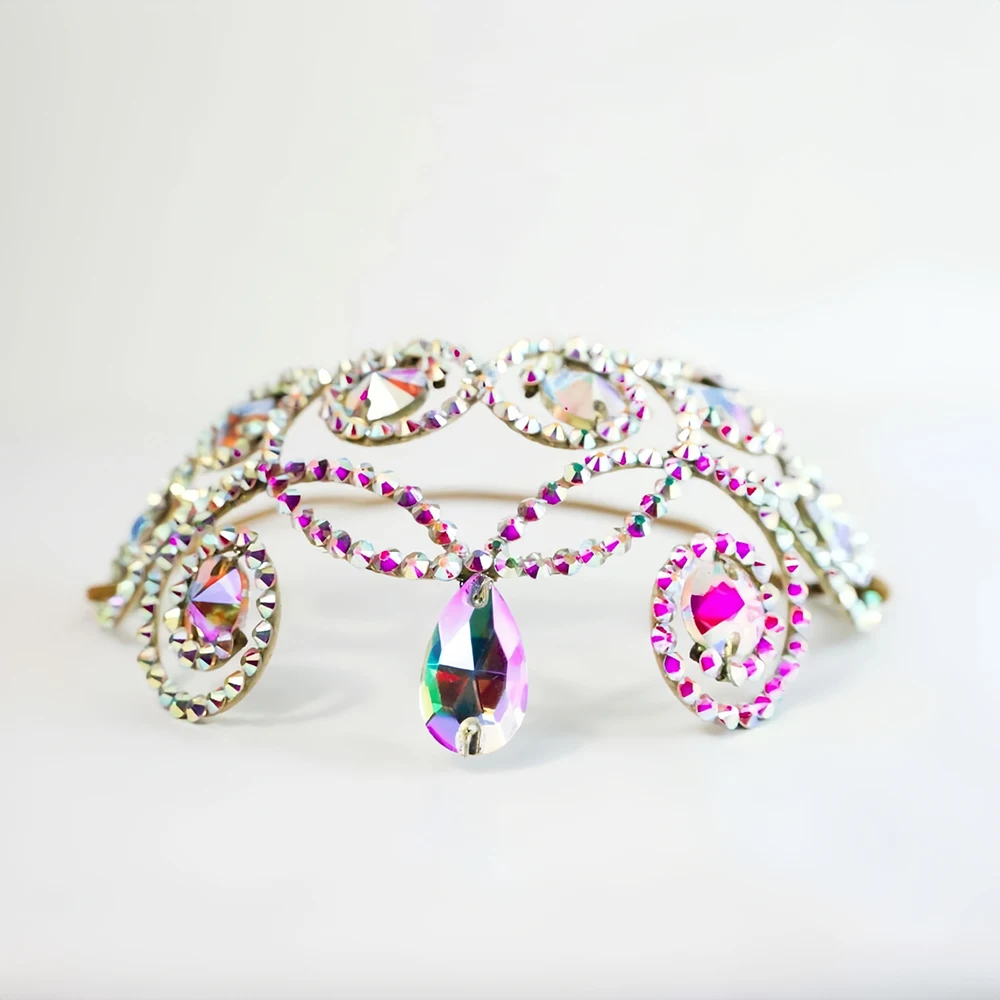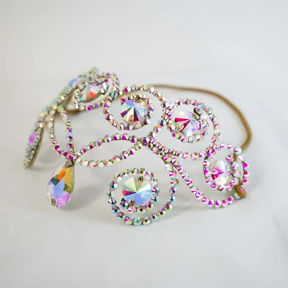 Stonefans Elegant Hollow Forehead Chain Belly Dance Head Decoration Colourful Geometric Rhinestone Headpiece Jewelry Ballroom