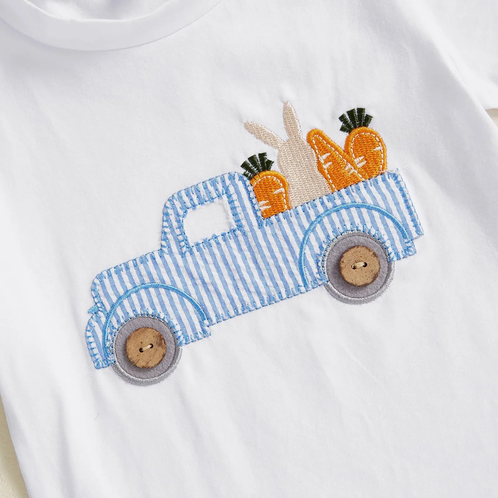 Toddler Baby Boys Easter Outfits Bunny Embroidery Short Sleeves T-Shirt and Elastic Carrot Stripe Shorts Set for Summer Clothes