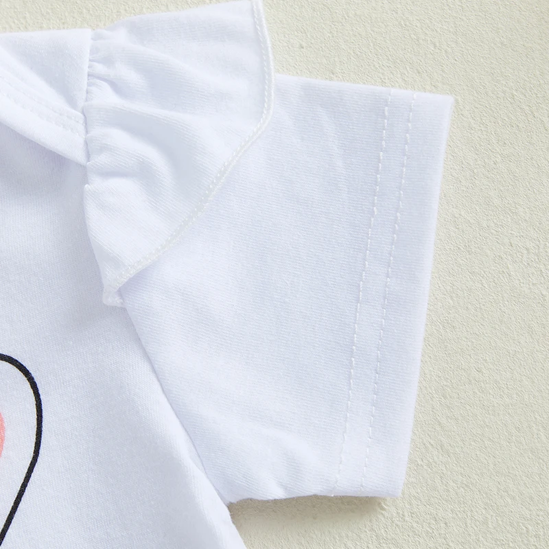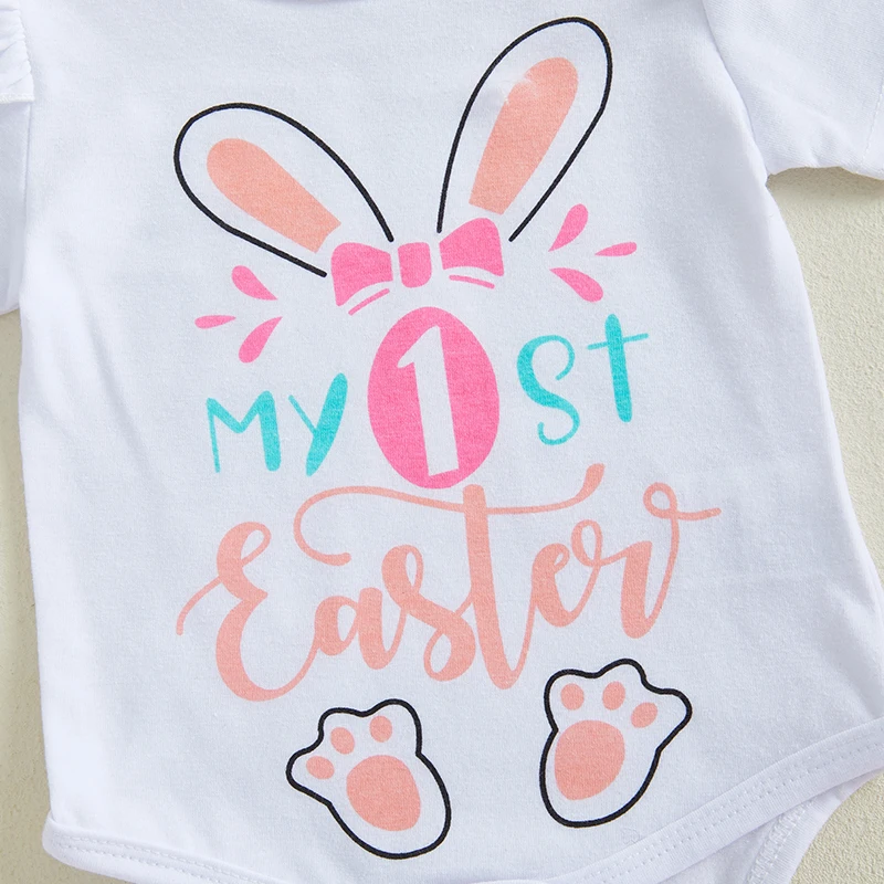 Toddler Easter Outfit Bunny Printed Short Sleeve Romper Suspender Pants Bow Socks Spring Set for Baby Boy