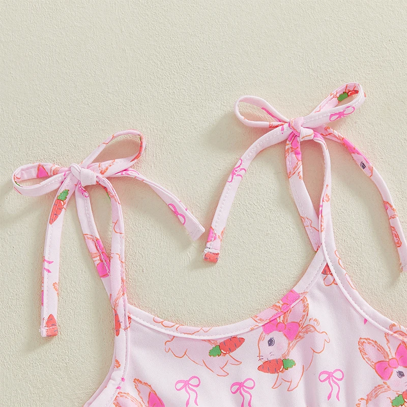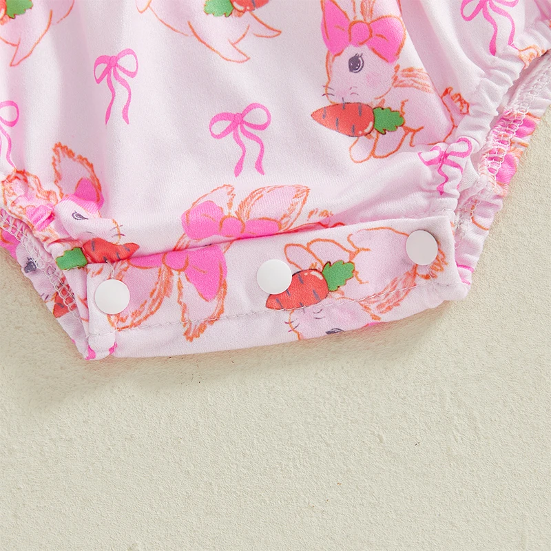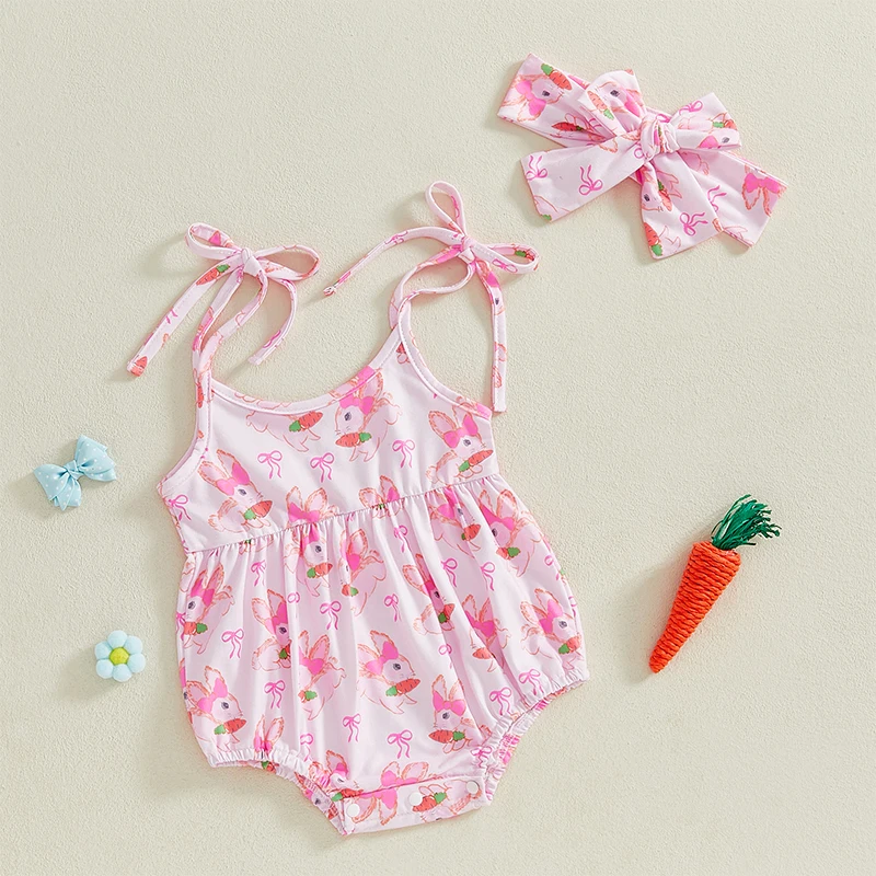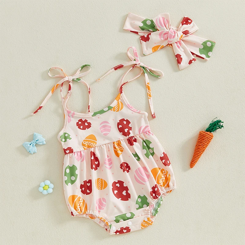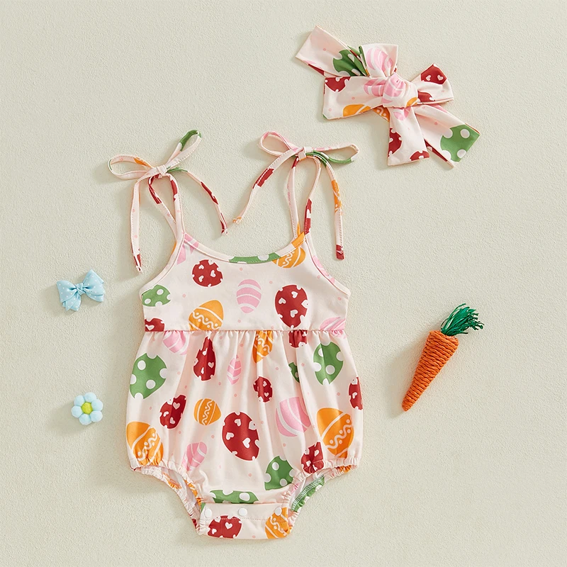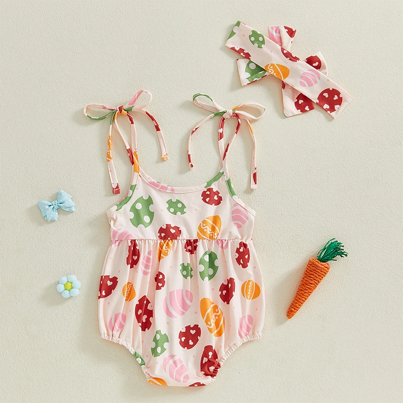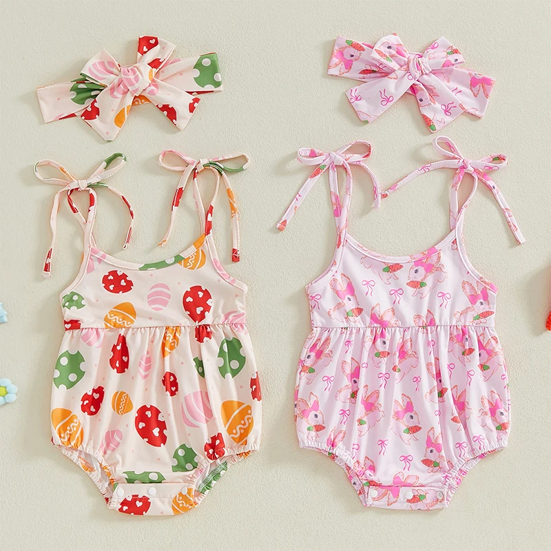 Baby Girls Easter Casual Romper Sleeveless Bunny Carrot/Eggs Print Cami Romper with HeadbandSize (cm)